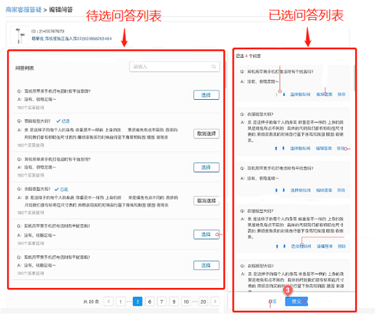 4,左边是待选的问答列表,右边是已选的问答列表。